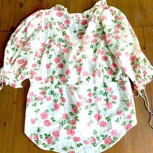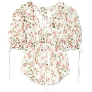 A romantic, button-front blouse with a plunging neckline and balloon sleeves that easily dress up any jean. Save this top for your next date or dinner reservation.