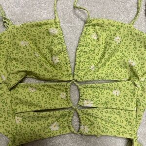 For Love and Lemons Green Animal Daisy Print One Piece Swimsuit medium & large