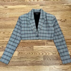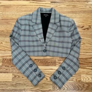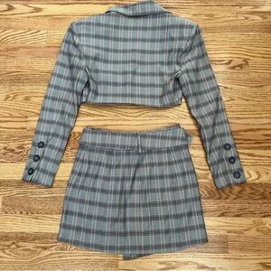For Love and Lemons Kym Crop Blazer and Skirt Set Plaid Academia Gray Size Small