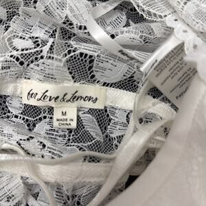 Forever femme and sultry, this stunning top from For Love & Lemons is featured in a sweetheart neckline with sheer lace fabrication, strappy bodice detailing, and puffed sleeves for a timeless look.
