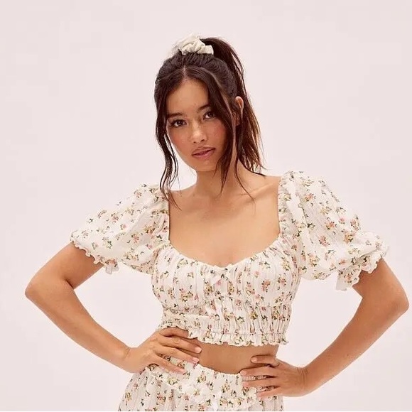 For Love and Lemons Lola Pointelle Top Floral Size Small