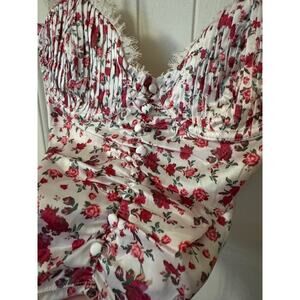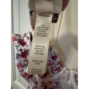 Designed with a delicate floral print, this stretch lace bustier is framed by dreamy scalloped trim. Complete with pleated underwire cups and decorative buttons along the center front. An exclusive collaboration that blends dreamy confidence with thoughtful detailing, giving each piece a unique and feminine feel.