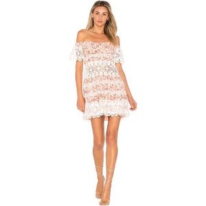 For Love and Lemons Mini Dress Off Shoulder Tiered Lace Floral Pattern Small