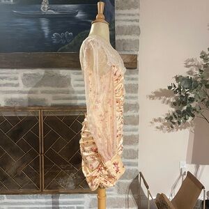 For Love and Lemons NWT peach pink floral silky lacy mini dress