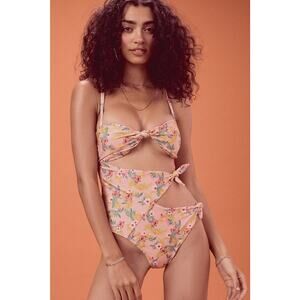 For Love and Lemons One-Piece Cut-out Swimsuit Bathing Suit Tropical M