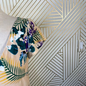 For Love and Lemons Pina Colada Tropical Romper in Peach / Pink. Features allover tropical floral print on peach background. Features ruffle details at shorts hem. Flutter style sleeves. Zips up the back.