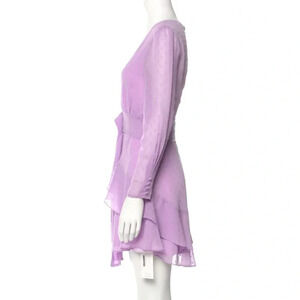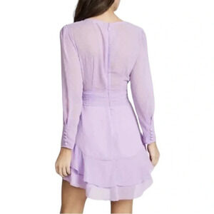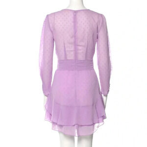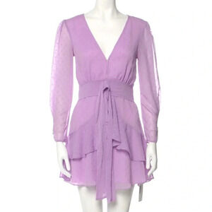 For Love and Lemons Purple V Neck Swiss Dot Front Tie Ruffle Mini Dress Size S