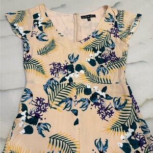 For Love & Lemons romper in size medium. Light yellow with floral print shown.
