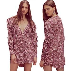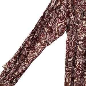 For Love and Lemons Romy Paisley Romantic Feminine Brown Pink Ruffle Dress Large