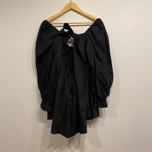 100% organic cotton. Made in India. Machine wash. Unlined. Hidden back zipper closure. Blouson sleeves with cinched cuffs. Back cut-out with tie detail. Coquette style. Sweetheart neckline. A great cocktail dress for a party or just for a day out. Pretty light weight material and breathable cotton. Size medium. New with tags and in perfect condition.