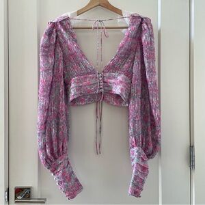For Love and Lemons Saylor Blouse in Pink Balloon Pleats Sleeves Size XS