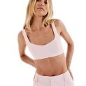 For Love and Lemons, Shannon Crop Top Size Medium. Color Light Pink. Non-smoking dog-loving home. Per site description: Shannon is a structured bra top featuring adjustable buttoned shoulder straps and an accordion hook closure. The fabric is recycled polyester gabardine suiting material. The lining is a silky satin jacquard made from Ecovero viscose. Ecovero viscose is derived from certified renewable wood sources using eco-responsible production and meeting high environmental standards.