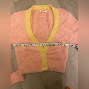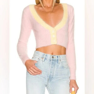 For Love and Lemons Sheila Cropped Cardigan Pink Size Medium. Good pre-owned condition, light material wear throughout and behind the button placket. Not noticeable when worn.