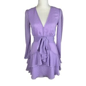 For Love and Lemons Tarta Long Sleeve Mini Dress Lavender Size Small NEW