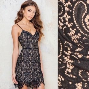 The perfect date night mini dress with a sexy lace overlay from the romantic-femme experts at For Love & Lemons.