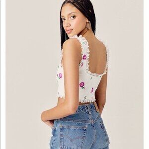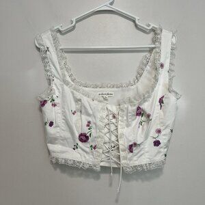 For Love and Lemons Violet Crop Bustier Corset White Floral Top Size Small