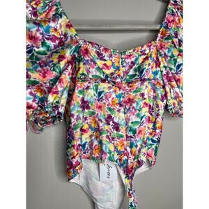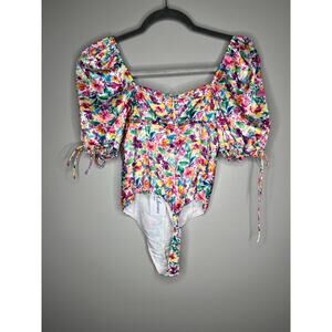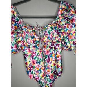 For Love and Lemons Watercolor Exclusive Floral Bow Cut Out Bodysuit NWT Size XS