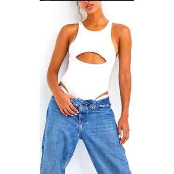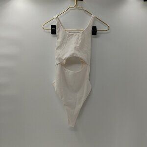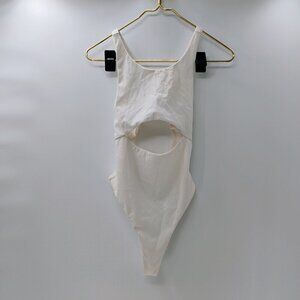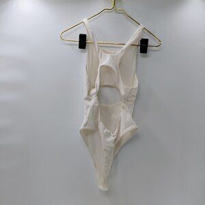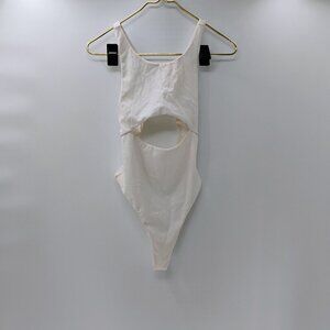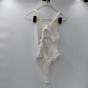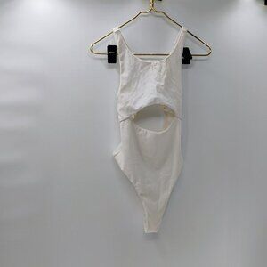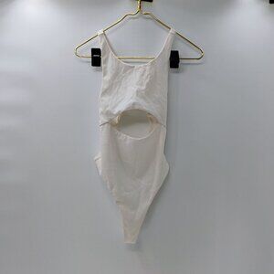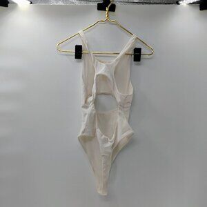 For Love and Lemons White Cut Out Ribbed Thong Bodysuit Medium Sexy Summer