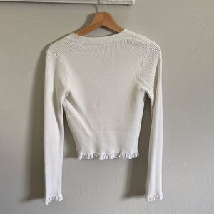 For Love and Lemons White Ribbed Button-Up Cardigan