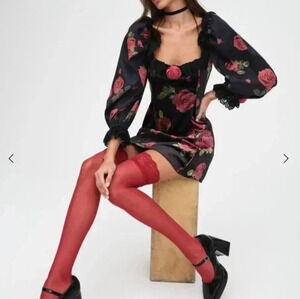 For Love and Lemons Yara Mini Dress Floral Roses Whimsy Goth Black Red XS