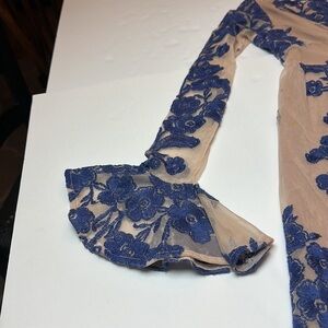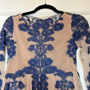 “For Love and Lemons” embroidered floral dress with mesh sheer sleeves