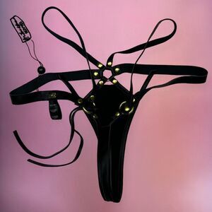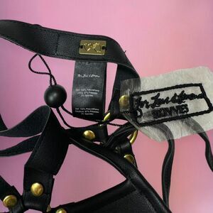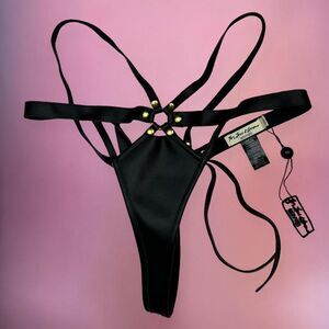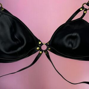 For Love and Lemons new with tags faux leather bralette and matching thong lingerie set with gold hard wear and tie back on the top and tassel on the bottom🖤