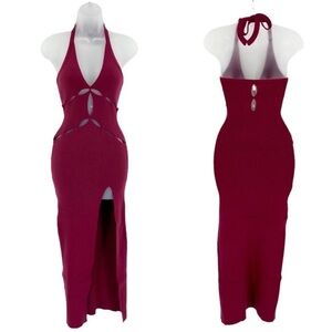 For Love and Lemons ribbed knit halter cut out midi high slit dress Size S NWT