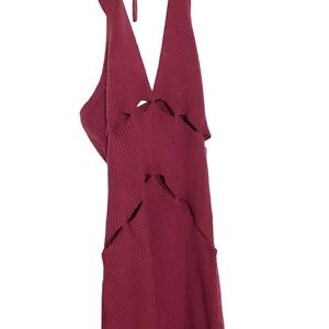 Brand new For Love and Lemons ribbed knit midi dress. Halter tie neckline. Sleeveless design. High slit. Cutouts around the bust and rib cage. V neck. Midi length.