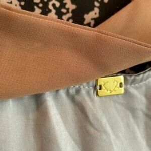 satin, brand logo, laces, two-tone, deep neckline, sleeveless, no pockets, unlined