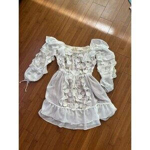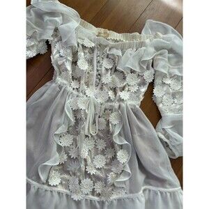 For Love and Lemons Carolina White Lace Long Sleeve Floral Mini Dress XS