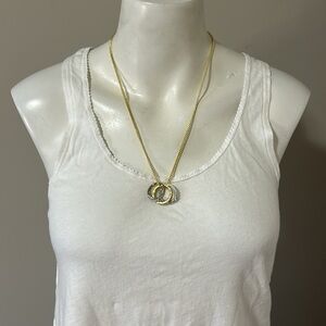 • Rope chain necklace with three different, silver metal removable and wearable rings