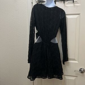For Love And Lemons Black Cut Out Flared Cocktail Dress VNeck Long Sleeve Mini