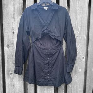 Tie-front dresses aren't just for beachy styles. Bring this black midriff-baring mini by For Love and Lemons across seasons with knee-high boots and an oversized shearling coat.