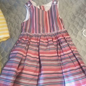 Gymboree dress size 6 but fits like a 5. Other items to consider are the blue dress with roses by Gap size 6&7. This dress is in like new condition. Both are navy blue.