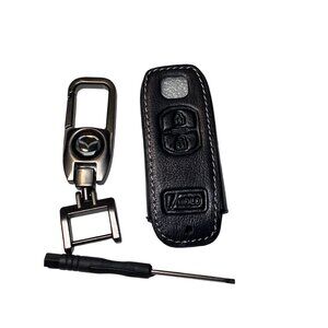For Mazda Premium Key Fob and Key Chain Faux Black Leather New