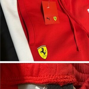 Vibrant red sweatshirt with iconic Ferrari emblem. Ideal for everyday style.