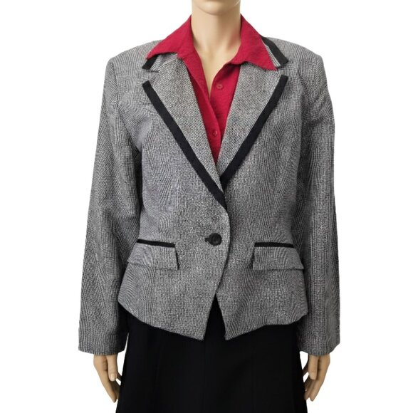 For Pete’s Sake Blazer Houndstooth Black and White Single Button Womens Medium