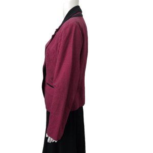 For Pete’s Sake Houndstooth Blazer Black Fuchsia Cotton Linen Womens Size Medium