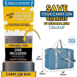 For Spirit Airlines Personal ItemBag 18x14x8 Foldable Travel DuffelBag Underseat