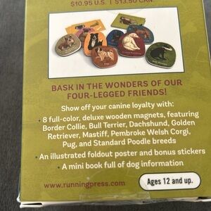 Comes with 8 wooden magnets of dogs, a small poster, and a 46 page mini book - A Little Guide To Dogs.