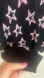 Chic V-neck sweater with vibrant pink and white star pattern. Perfect for casual wear.