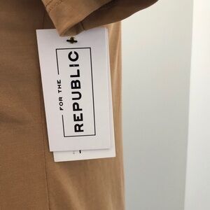 For The Republic Mock Neck Short Sleeve Tan Blouse SZ X Small Career Wear Is New With Tags.
