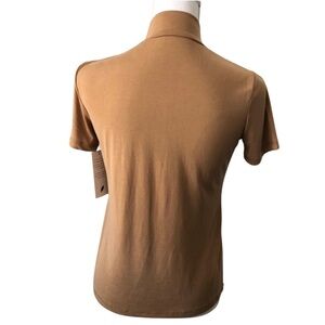 For The Republic Mock Neck Short Sleeve Tan Blouse SZ X Small Career Wear NWT