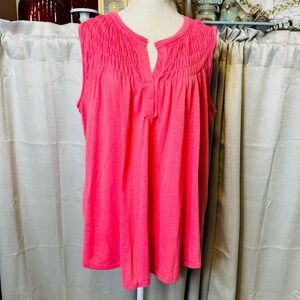 For The Republic Pink Smocked Sleeveless Blouse 1X