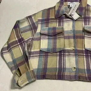 For The Republic Plaid Cropped jacket purple blue beige size medium -flannel