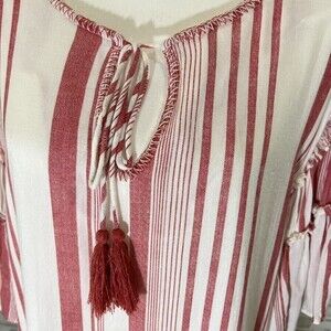 For The Republic Red & White Tassel Striped Ruffle Bell Sleeves Dress Size S.