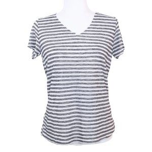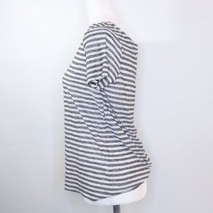 Size XS with approximate measurements of 14" from top shoulder edge across to other shoulder edge, 17.5" across bust (pit to pit), and 24" from the top of shoulder to the bottom (front) hem.