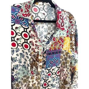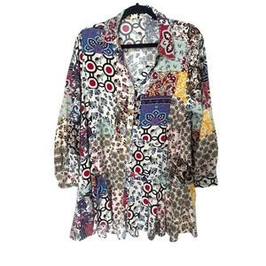 For The Republic Tunic Blouse Elephants Patchwork Whimsy Artsy Boho Plus Size 1X