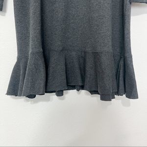 Soft tee shirt material dress. Crew neckline, long sleeves and ruffled raw hem.