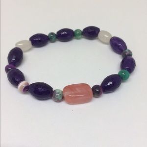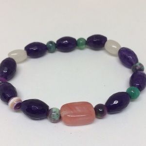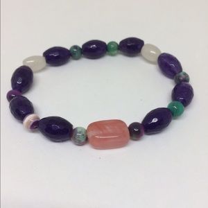 Elastic bracelet will fit most. Stones include Rose Quartz, Moonstone plus Amethyst,and Ruby in Fuchsite.Handcrafted by me so no tags